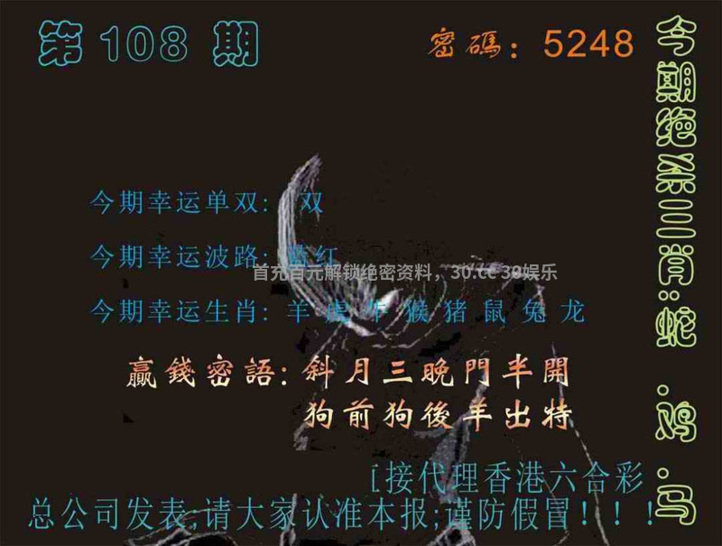 281期:澳门王牌澳彩④肖④码期期中奖✔